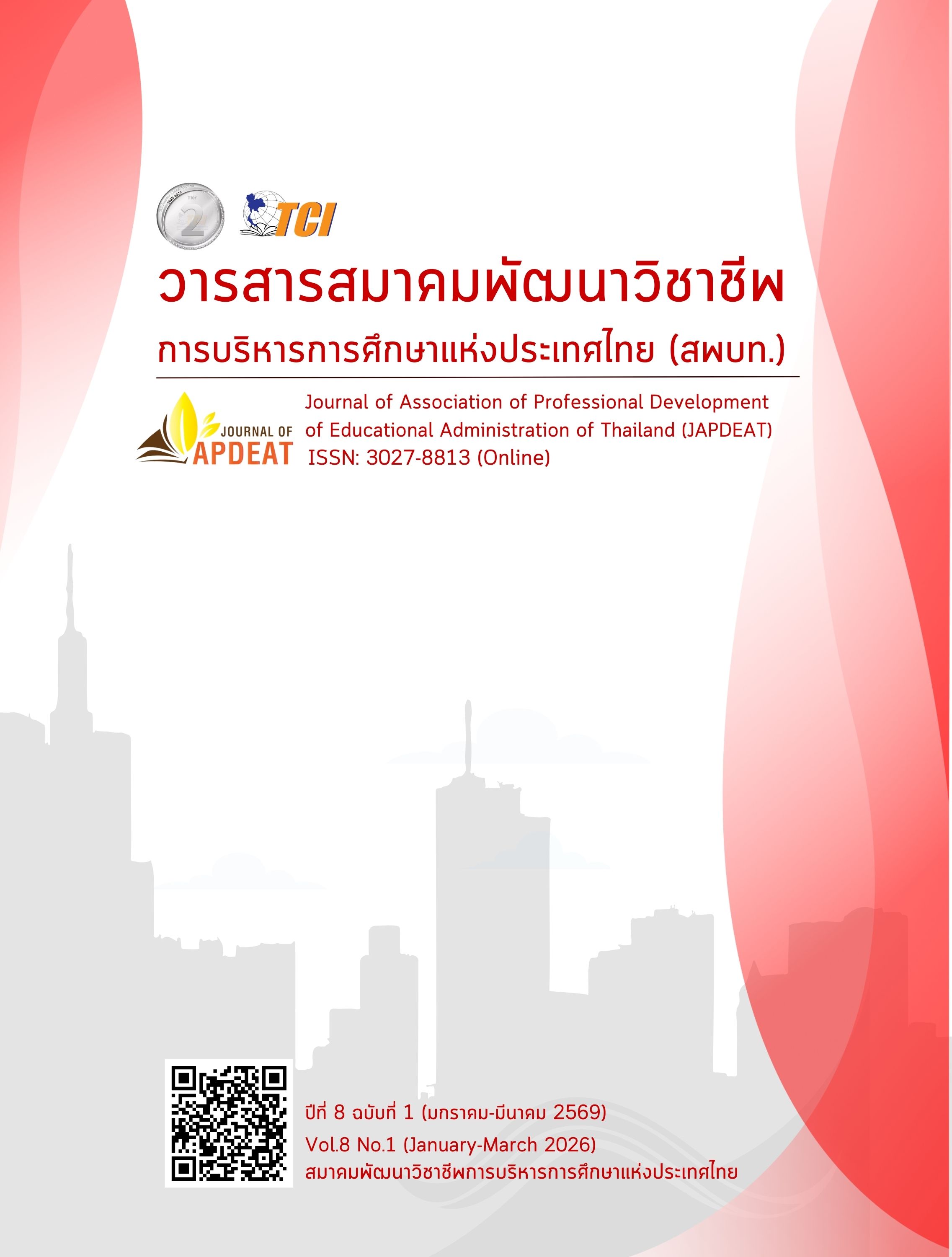ปัญญาภา ร. (2026). รายละเอียดประจำฉบับ. วารสารสมาคมพัฒนาวิชาชีพการบริหารการศึกษาแห่งประเทศไทย (สพบท.), 8(1). สืบค้น จาก https://so04.tci-thaijo.org/index.php/JAPDEAT/article/view/287796