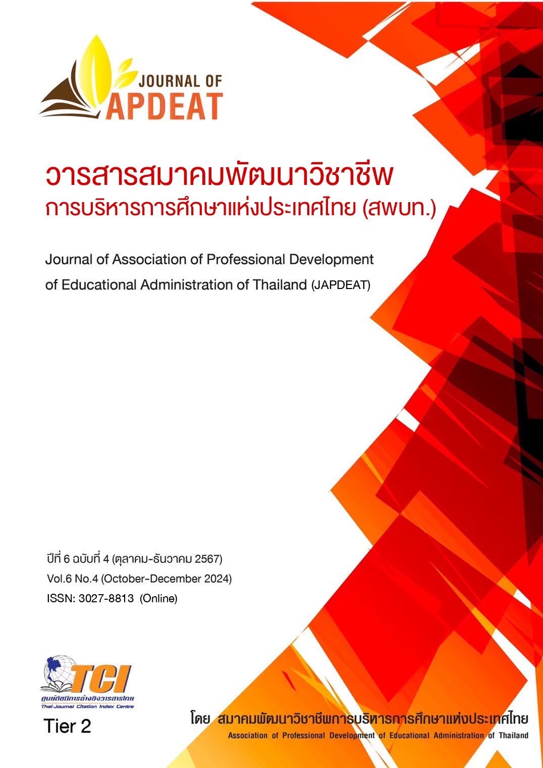 วารสารสมาคมพัฒนาวิชาชีพการบริหารการศึกษาแห่งประเทศไทย (สพบท.) ฉบับปีที่ 6 ฉบับที่ 4 (ตุลาคม-ธันวาคม 2567) วารสารฉบับนี้ประกอบไปด้วย 32 บทความ จำแนกเป็น 30 บทความวิจัย และ 2 บทความวิชาการ เนื้อหาในเล่มมีความหลากหลายประเด็นเชิงวิชาการ น่าสนใจ และเป็นประโยชน์ในเชิงปฏิบัติทั้งในการบริการการศึกษา บริหารสถานศึกษา และการจัดการเรียนรู้ ไม่ว่าจะเป็น การบริหารจัดการโรงเรียน การพัฒนาการรู้ดิจิทัล ภาวะผู้นำ แรงจูงใจในการปฏิบัติงานของครู องค์กรแห่งความสุข การพัฒนาการบริหารจัดการสภาพแวดล้อม การประกันคุณภาพภายในโรงเรียน ความฉลาดทางดิจิทัลและภาวะผู้นำเชิงดิจิทัล การนำนโยบายไปสู่การปฏิบัติงาน หลักการส่งเสริมบรรยากาศการเรียนรู้ แนวทางในการพัฒนาแรงจูงใจ การใช้ภาษา การบริหารงานแบบมุ่งผลสัมฤทธิ์ จัดการเรียนรู้เชิงรุกเสริมด้วยชุดกิจกรรม ซึ่งจะเห็นได้ว่ามีความเหมาะสมกับยุคสมัยเป็นอย่างยิ่ง ผลงานเหล่านี้เป็นบทความทั้งจากนักวิชาการระดับผู้ทรงคุณวุฒิทางการศึกษา คณาจารย์ผู้มากประสบการณ์การวิจัย และนักศึกษาระดับบัณฑิตศึกษาจากหลากหลายสถาบันการศึกษาทั่วประเทศ