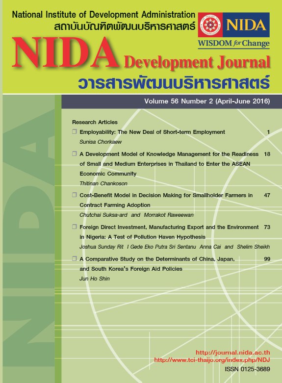 Vol. 56 No. 2 (2016): วารสารพัฒนบริหารศาสตร์ NIDA DEVELOPMENT JOURNAL ปีที่ 56 ฉบับที่ 2/2016