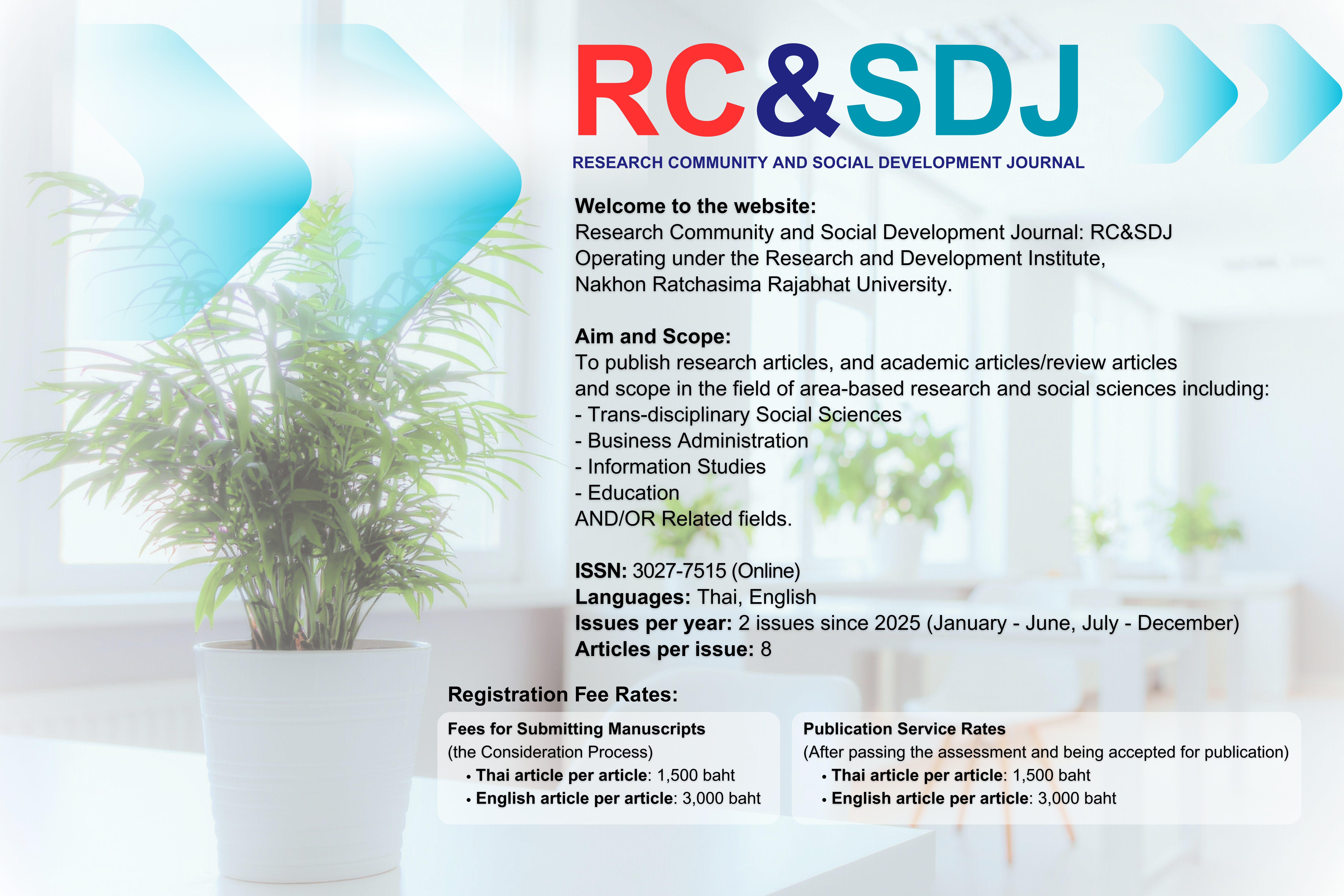 Research Community and Social Development Journal", indexed in Thai Journal Citation Index Centre - TCI for Social Sciences. by Research and Development Institute, Nakhon Ratchasima Rajabhat University